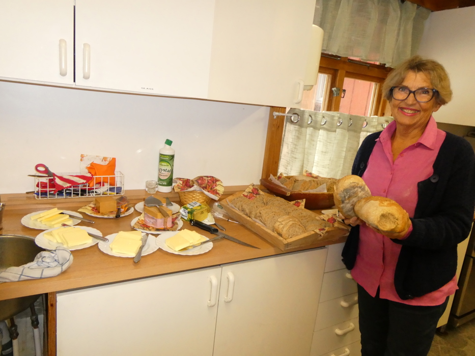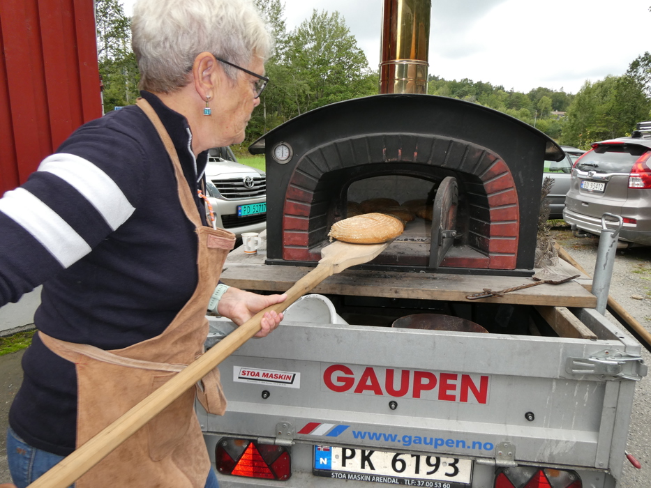 Ute på tunet blei det servert nysteikt bakerovnsbrød med smør, sukker og sirup på, nysteikt søsterkake og skaukaffi. Folk kunne og kjøpe nysteikt brød med seg heim. Moland Bygdekvinnelag sto for brødbakinga og serveringa, noko som vart særs vellukka.
