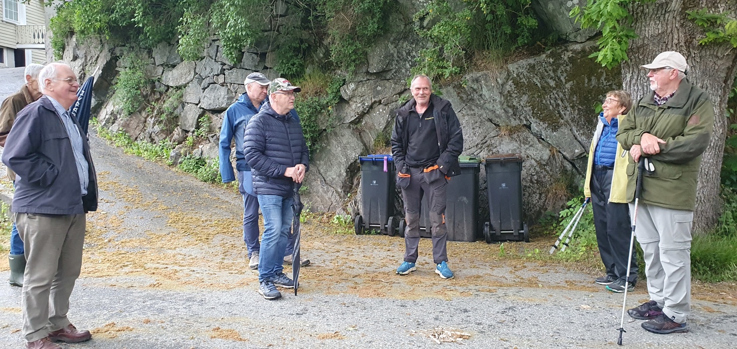 Været var ikkje det beste denne kvelden, men 30 personer fekk med seg ein innhaldsrik tur. Theis Theisen og Inge Myhren fortalde historier om dei ulike stadene og gårdene undervegs. Turen starta forbi Råna gården ( Filadelfiabygget) , langs Langsævannet og deretter over Rånakanalen til Eidet. På Holmen fortalde Theis Theisen om plassen og dei som hadde eigd plassen opp gjennom tidene. Vidare gjekk turen inn på Gunhildsboveien( “gamle Myraveien”) til Eiga ( Ei stor eik i vegkanten). Eiga var i tidlegare tider ein samligsplass for ungdom. Inge Myhren orienterte om Gunhildsbo og Fjellmannsveien som vi fulgte videre forbi Gunnhildsbo. På ein av Gunhildsbo-gårdene står eit innhus frå 1640-talet som er restaurert i gamal stil. På 1640-talet kjøpte danske kongen Christian Quart opp Gunnhildsbo og andre gårder i området for å drive gruvedrift. Den planlagte gruvedrifta blei det ikkje noko av. Tilbaketuren gjekk langs NAV-bygget ,ut på gangvegen og tilbake til parkeringsplassen der guidene og Lars Jonny Bringsverd blei takka med blomster for eit flott turopplegg.