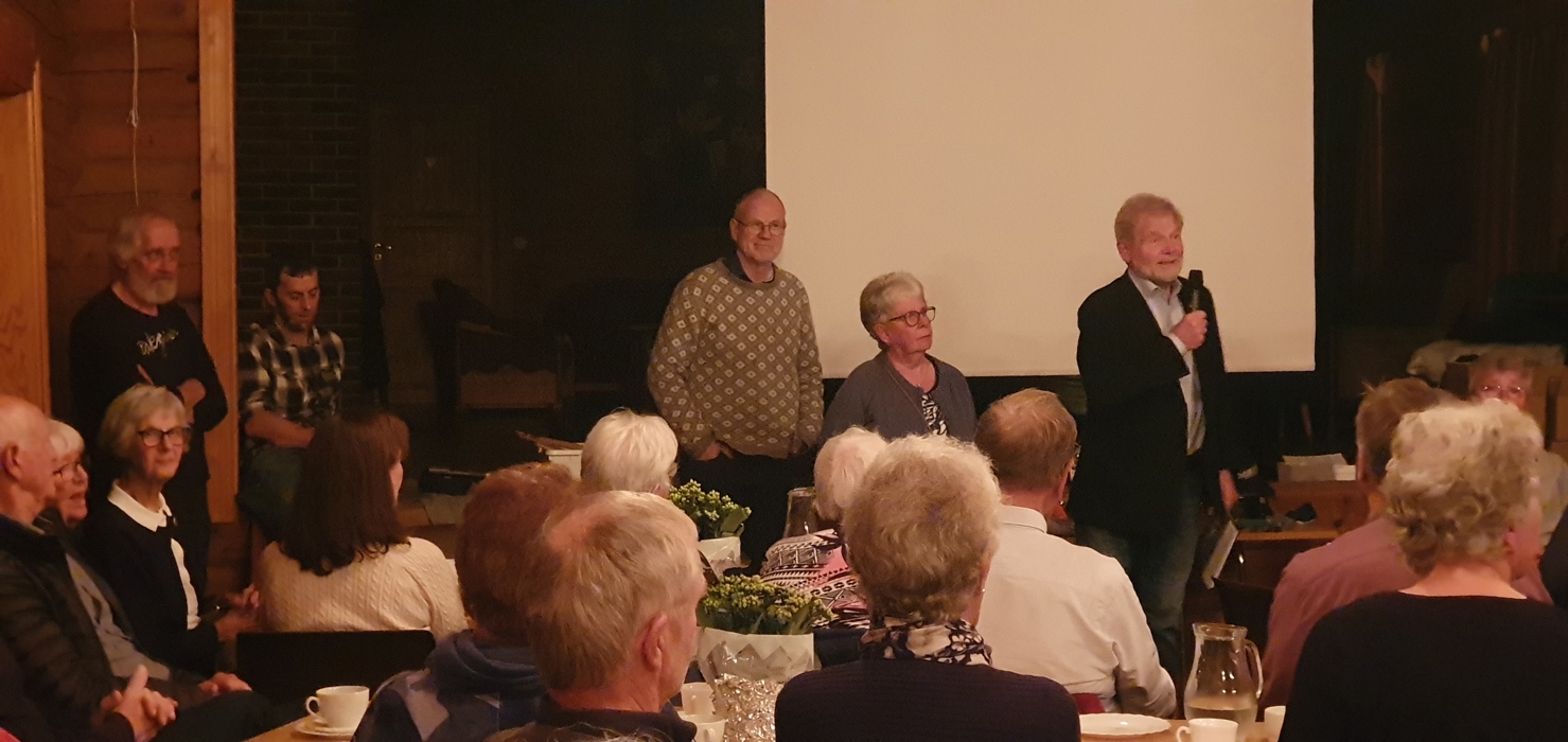 Så var det kveldsmat med smørbrød og kaker, loddsal og sal av årboka. Praten gjekk lystig rundt borda og folk kosa seg. I pausen orienterte Nils Åge Vikingsdal om skogkulturkveld på Dalen Misjonshus 17. nov. med Sigbjørn Johnsen som skal lese dikt av Hans Børli mm.