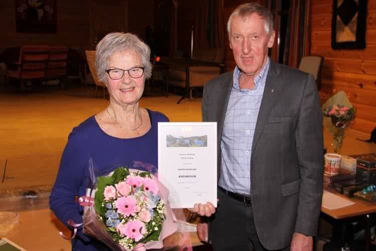 Æresmedlemmer Publisert av Trond Ivar Moen den 20.02.15. Oppdatert 16.12.22. På årsmøtet på Heimtun 19. februar 2015 ble Kirsten Noddeland og Anders Adolf Engelskjønn utnevnt til æresmedlemer av Austre Moland Historielag.De nye æresmedlemmene ble overrakt æresbevis og blomster av lages leder Sigurd Ledaal.