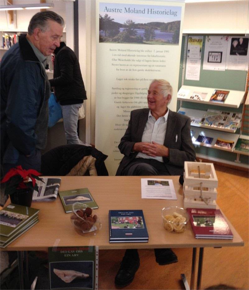 Austre Moland historielag deltok på Litterært Julebord i Arendal bibliotek lørdag 30. november 2013. Bokkomiteen hadde delt dagen mellom seg , informerte om årboka, solgte årboka og bød på julekaker til barn og voksne.