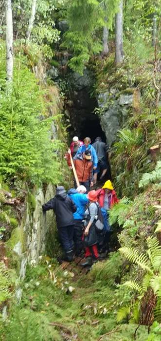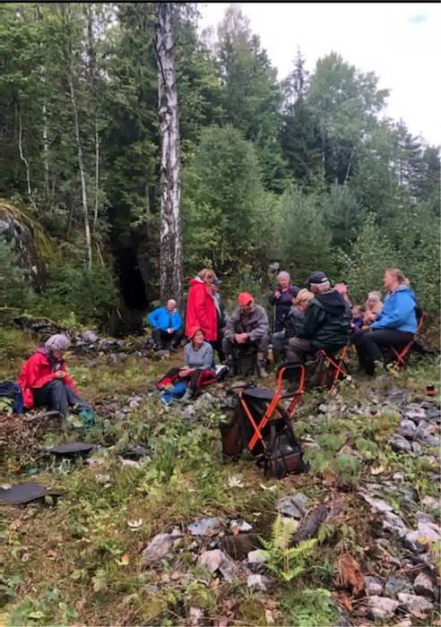 Etter foredraget til Eiiv Ulltveit Moe, letta regnværet og det blei tur innom Grasåsgruva som ligg rett ved skytebanen. Deretter gjekk turen til Fjellsgruva . Langs skogsvegen var det lagt opp ein historisk natursti for vaksne og natursti for barn. Vi fekk ei lita orientering ved «vannkonsta» før vi enda opp ved Fjellsgruva. Alle som ønska det fekk komme inn i gruva. Deretter blei det matpause, god prat og gjennomgang av naturstispørsmåla. Sjøl om været ikkje var det beste i starten, vart det ein vellukka høsttur.